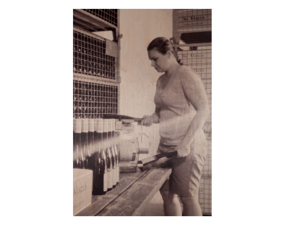 Vier fotografische Positionen zum Thema Wein "Von Reben und Rieden" Schloss Spitz, Wachau 2013 <br><br> Ilse & Christine Mazza - Zwei Wachauer Winzerinnen <br><br> Vor acht Jahren begann Lachlan Blair aufwändige Fotogramme im nächtlichen Weingarten der Weißenkirchner Winzerin Ilse Mazza zu machen. Im Gegensatz zu seinen digitalen Aufnahmen während der Weinlese, brachte ihn diese traditionelle Fototechnik zurück zu einer Langsamkeit, die dem Thema Wein eher gebührt. Die logische Konsequenz war die Fortsetzung der Arbeit mit Ilse und Tochter Christine mittels Lochkamera-Aufnahmen. Die Dokumentation des Prozesses Wein zu machen bedarf seines Erachtens einer anderen, langsameren Art von Fotografie: Wie die Qualität jedes Jahrgangs beim Wein nicht 100%ig vorhersehbar ist, so liegt es auch bei großer Sorgfalt und Planung nicht völlig im eigenen Ermessen, wie eine Aufnahme mit Lochkamera schlussendlich aussieht. <br> <br> Auch hier helfen Erfahrung und Praxis, sind besondere Hinwendung und Geduld wichtige Komponenten, dennoch spielen äußere Gegebenheiten und Zufall eine große Rolle. Die Lochkamera bildet das Motiv so ab, wie es vor der Kamera steht, authentisch und unverfälscht, es gibt keine technische Raffinesse, die eingesetzt wird, es geht um die Abbildung als solche. <br> <br> Die Lochkamera ist eine der ältesten fotografischen Techniken, eine der einfachsten Methoden von Fotoaufnahmen. Die hier ausgestellte Serie entstand in Kombination mit einem zeitgenössischen Prozess: Die Negative werden gescannt und UV-Licht beständig direkt auf Holz gedruckt. Dieses Inkjetdruckverfahren ist höchst innovativ und auf dem letzten Stand der Technologie. Das Holz als Bildträger passt sich Blairs Anspruch, die Nähe zwischen den Ursprünglichkeiten von Weinbau und Fotografie zusammen zu denken durch seine archaische Qualität an. <br> <br> Die Wachau ist für seine Winzer bekannt und die Stars darunter werden international hoch gehandelt; mit dieser Serie werden gerückt, das sie weder als Stars noch beschönigt darstellt. "Mensch, Natur, Handwerk und Kultur in Einklang zu bringen" ist Ilse Mazzas Philosophie. Blair nimmt dieses Anliegen in seine Bilder auf, stellt zwei Winzerinnen ins Rampenlicht und macht die beiden Frauen in einer von männlichen Kollegen dominierten Welt sichtbar.