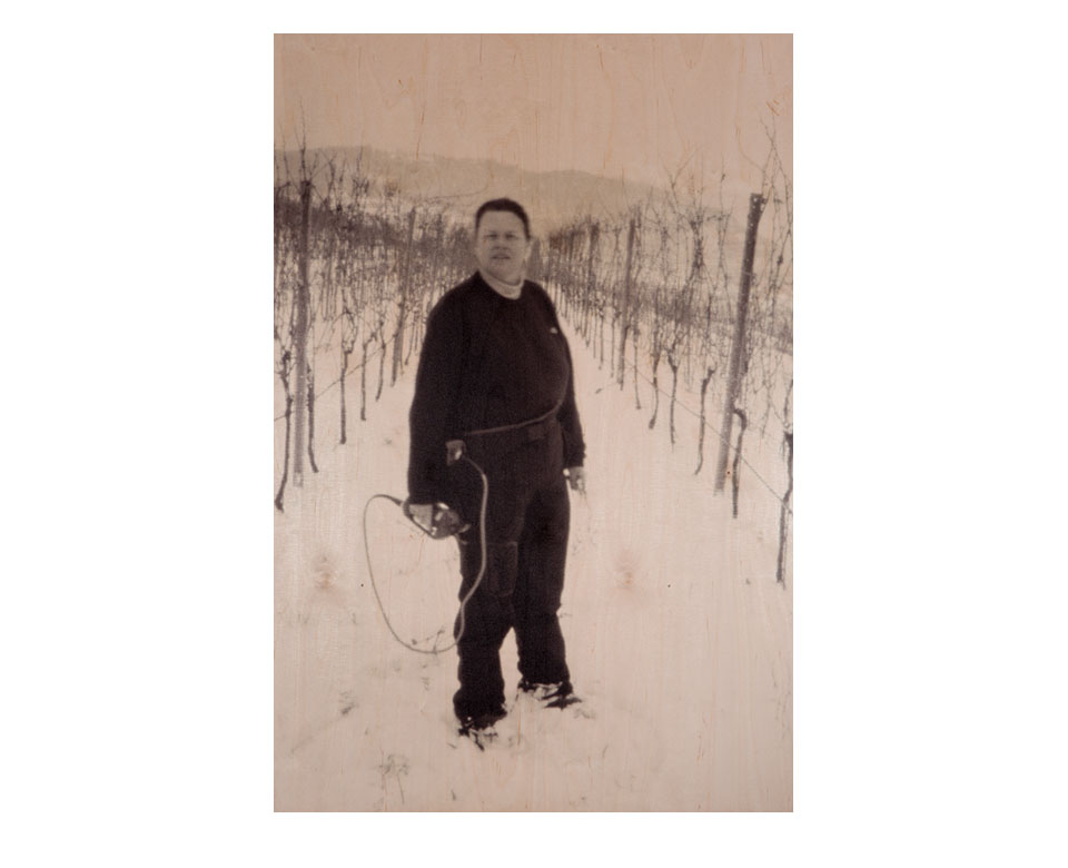 Vier fotografische Positionen zum Thema Wein "Von Reben und Rieden" Schloss Spitz, Wachau 2013 <br><br> Ilse & Christine Mazza - Zwei Wachauer Winzerinnen <br><br> Vor acht Jahren begann Lachlan Blair aufwändige Fotogramme im nächtlichen Weingarten der Weißenkirchner Winzerin Ilse Mazza zu machen. Im Gegensatz zu seinen digitalen Aufnahmen während der Weinlese, brachte ihn diese traditionelle Fototechnik zurück zu einer Langsamkeit, die dem Thema Wein eher gebührt. Die logische Konsequenz war die Fortsetzung der Arbeit mit Ilse und Tochter Christine mittels Lochkamera-Aufnahmen. Die Dokumentation des Prozesses Wein zu machen bedarf seines Erachtens einer anderen, langsameren Art von Fotografie: Wie die Qualität jedes Jahrgangs beim Wein nicht 100%ig vorhersehbar ist, so liegt es auch bei großer Sorgfalt und Planung nicht völlig im eigenen Ermessen, wie eine Aufnahme mit Lochkamera schlussendlich aussieht. <br> <br> Auch hier helfen Erfahrung und Praxis, sind besondere Hinwendung und Geduld wichtige Komponenten, dennoch spielen äußere Gegebenheiten und Zufall eine große Rolle. Die Lochkamera bildet das Motiv so ab, wie es vor der Kamera steht, authentisch und unverfälscht, es gibt keine technische Raffinesse, die eingesetzt wird, es geht um die Abbildung als solche. <br> <br> Die Lochkamera ist eine der ältesten fotografischen Techniken, eine der einfachsten Methoden von Fotoaufnahmen. Die hier ausgestellte Serie entstand in Kombination mit einem zeitgenössischen Prozess: Die Negative werden gescannt und UV-Licht beständig direkt auf Holz gedruckt. Dieses Inkjetdruckverfahren ist höchst innovativ und auf dem letzten Stand der Technologie. Das Holz als Bildträger passt sich Blairs Anspruch, die Nähe zwischen den Ursprünglichkeiten von Weinbau und Fotografie zusammen zu denken durch seine archaische Qualität an. <br> <br> Die Wachau ist für seine Winzer bekannt und die Stars darunter werden international hoch gehandelt; mit dieser Serie werden gerückt, das sie weder als Stars noch beschönigt darstellt. "Mensch, Natur, Handwerk und Kultur in Einklang zu bringen" ist Ilse Mazzas Philosophie. Blair nimmt dieses Anliegen in seine Bilder auf, stellt zwei Winzerinnen ins Rampenlicht und macht die beiden Frauen in einer von männlichen Kollegen dominierten Welt sichtbar.