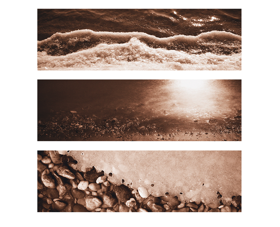 Permanent public art installation, Emmersdorf on the Danube council building, Lower Austria 2006 <br><br> In August 2002 the town of Emmersdorf was inundated with floodwaters from the Danube river. As part of the post-flood renovations, a permanent - art in public space - installation was included in the council chamber's building. <br><br> The concept is to present visitors, accessing the various chamber offices via stairs or a glass-paned lift, with a series of photographs depicting elements characteristic of Emmersdorf's natural environment. Starting from below water-level of the omnipresent Danube river, upward above the surface and onward through the fields and forest to the horizon and back to tree-tops reflected in water. <br><br> The municipal hall on the top floor features a large photograph of Emmersdorf's reflection in the Danube river. This view functions as a pleasant reminder that despite the threat of flooding, the town always remains the proud and beautiful Western door to the World heritage Wachau valley. The 300x230cm image is on permanent display, only to be replaced when the in-built projection screen is in use. <br><br> 12 digital C prints mounted with acrylic face & aluminium backing - 100x30cm <br> Inkjet print on canvas mounted over stretcher frame - 300x230cm
