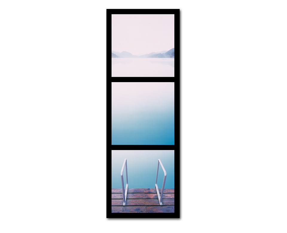 Proof ~ solo exhibition, Vienna Austria 2003 <br><br> What is PROOF? <br> proof (proof), n. the act of proving, a test, a trial; testing, assaying, experiment, demonstration…a first or early impression of a photograph…(Cassell Concise English Dictionary) <br><br> In darkroom technique after processing a roll of film, a PROOF of all images is made by trimming the film into strips so the complete roll fits a standard sheet of photographic paper, (eg. 25x20cm also a common large format sheet film size) laying the film on the paper and covering with glass so the film is in direct contact with the paper, then exposing so as to average all frames, allowing easy selection of images for enlargement in a positive form. <br><br> Exposing a complete roll of film in sequence with the final proof sheet in mind, creates a large format final image containing many individual compositions and more potential to make mistakes...for better or worse. With an increasing ease of access to photography through digital media, countless multiple image techniques have developed. Anything is possible and it's probably all been done before sometime, somewhere by someone. Time to go back to an emphasis on subject and composition with the anticipation of seeing a complete roll of processed film as PROOF. <br><br> <br><br> So what am I trying to prove? <br> Originally intended to greatly minimise or eliminate the need for correction before printing, I wanted to revisit an old idea and realise the concept of "the poor man's large format" by utilising a complete roll or sequence of film as original then printing large digitally. <br><br> Inkjet print on Artistex, wooden stretcher frame 70x200cm